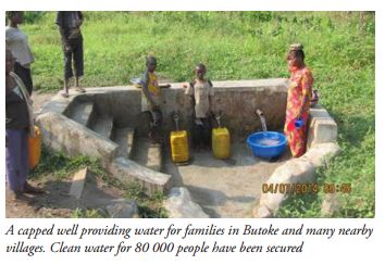 Capping a spring ensures clean drinking water by preventing the water source being contaminated by animal and human waste. The health benefits are huge: child mortality in the population served by springs previously capped by Butoke has fallen very substantially (by about one third) because there has been a large reduction in the number of cases of diarrhoea. In addition, the local population generally drink insufficient water because of the difficulty in obtaining it and the fear of diarrhoea. Higher clean water consumption has resulted in improved health, for example, fewer kidney infections. Access to clean water is essential